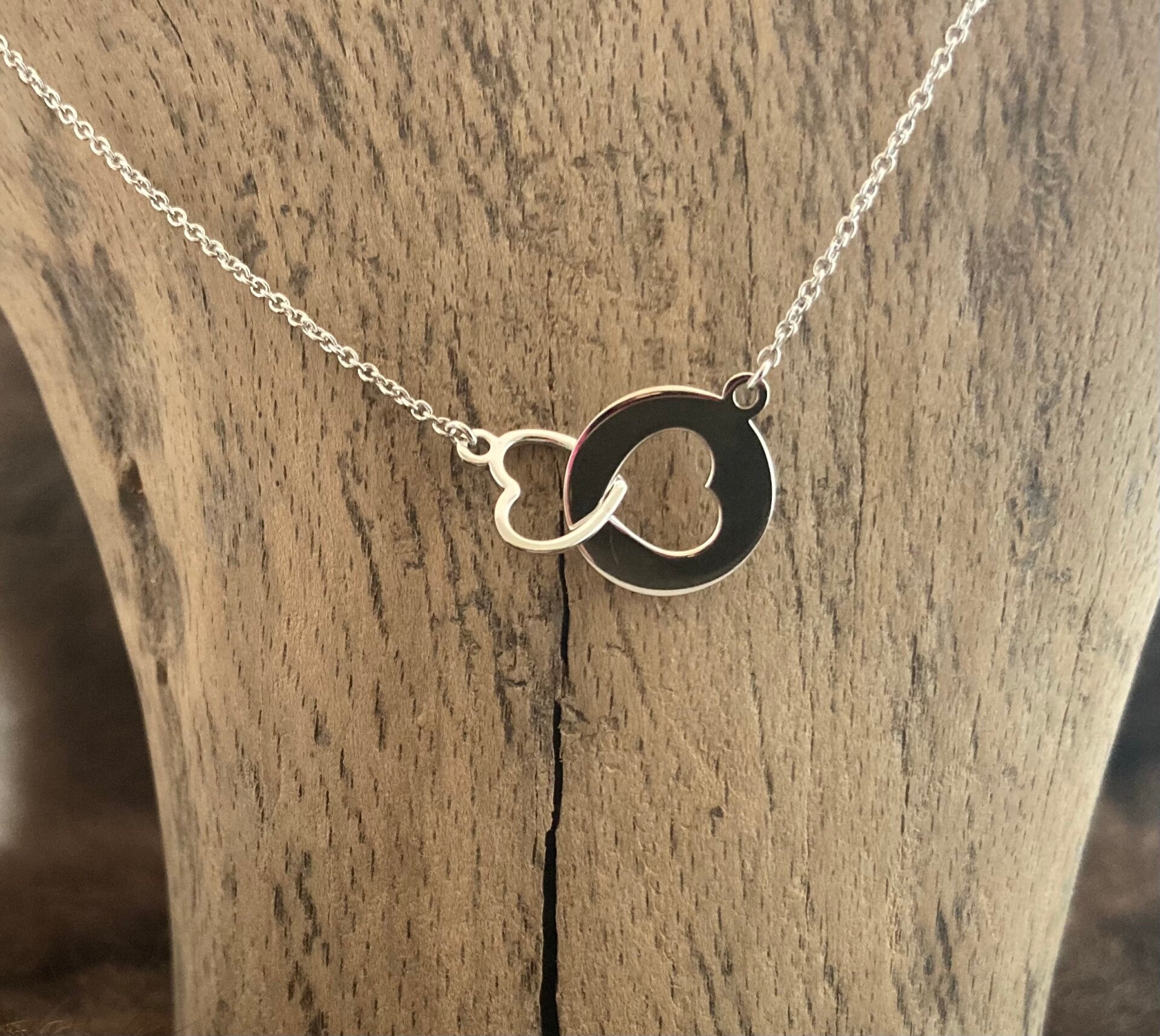 Lengte collier 41+4 cm dikte 1,3 mm anker collier met twee harten 1 e gehalte zilver gerhodineerd