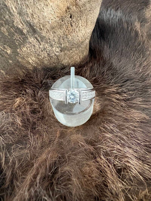 Zilveren ring met zirkonia 6mm band 4,5 mm maat 17 3/4 en maat 21 andere maten in overleg