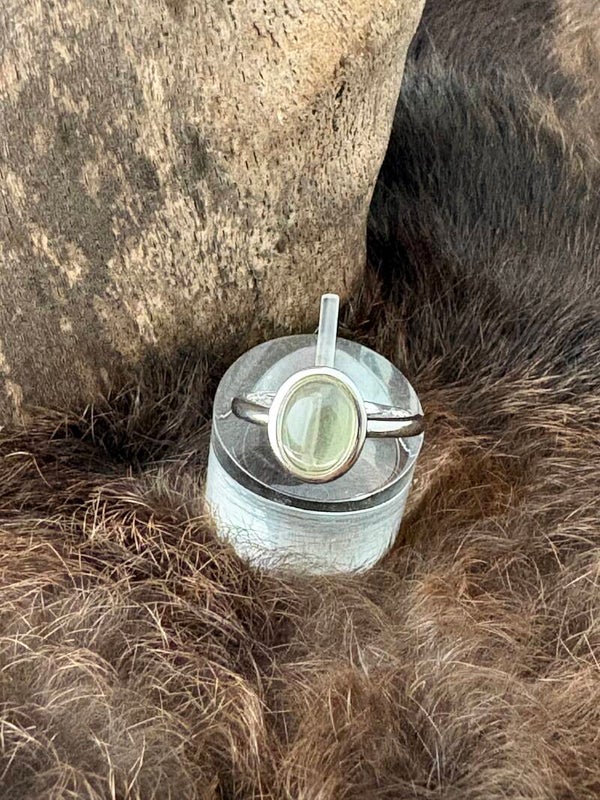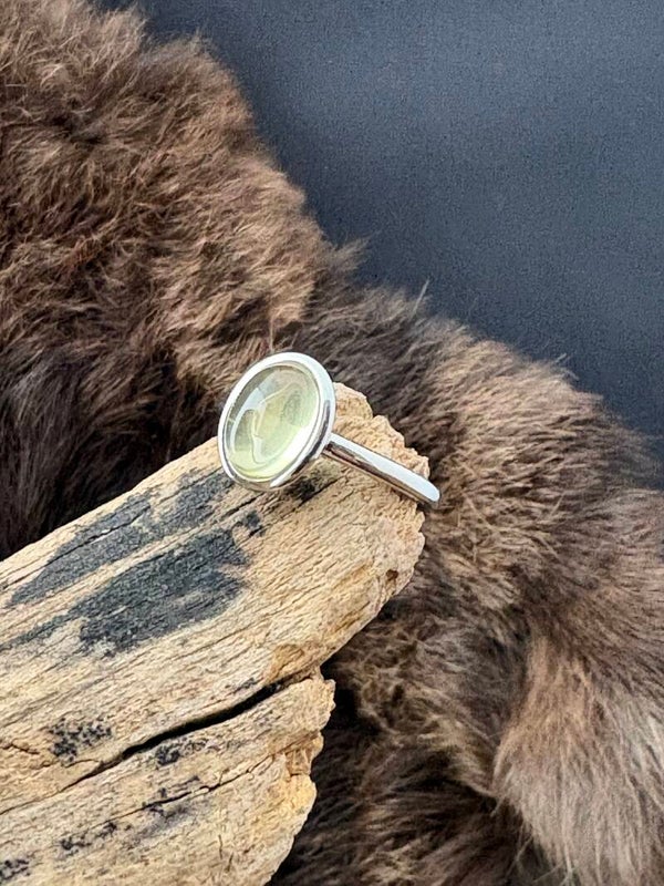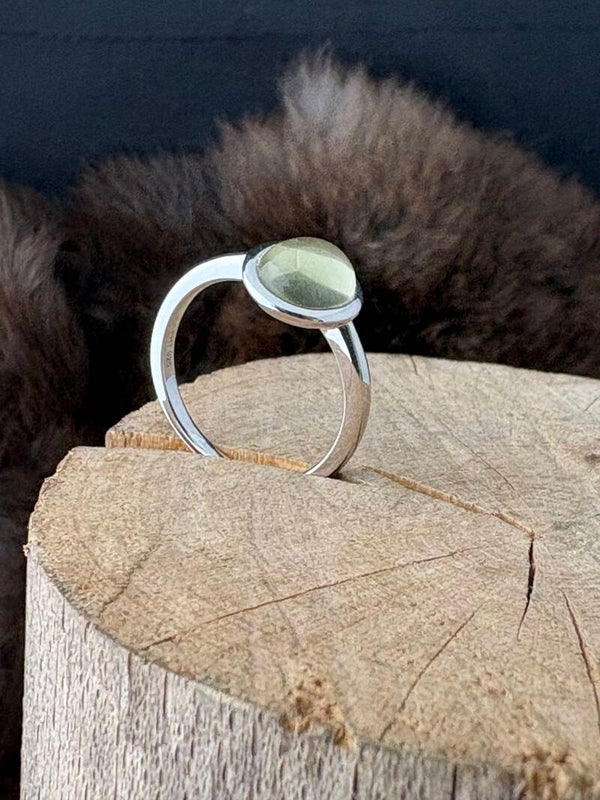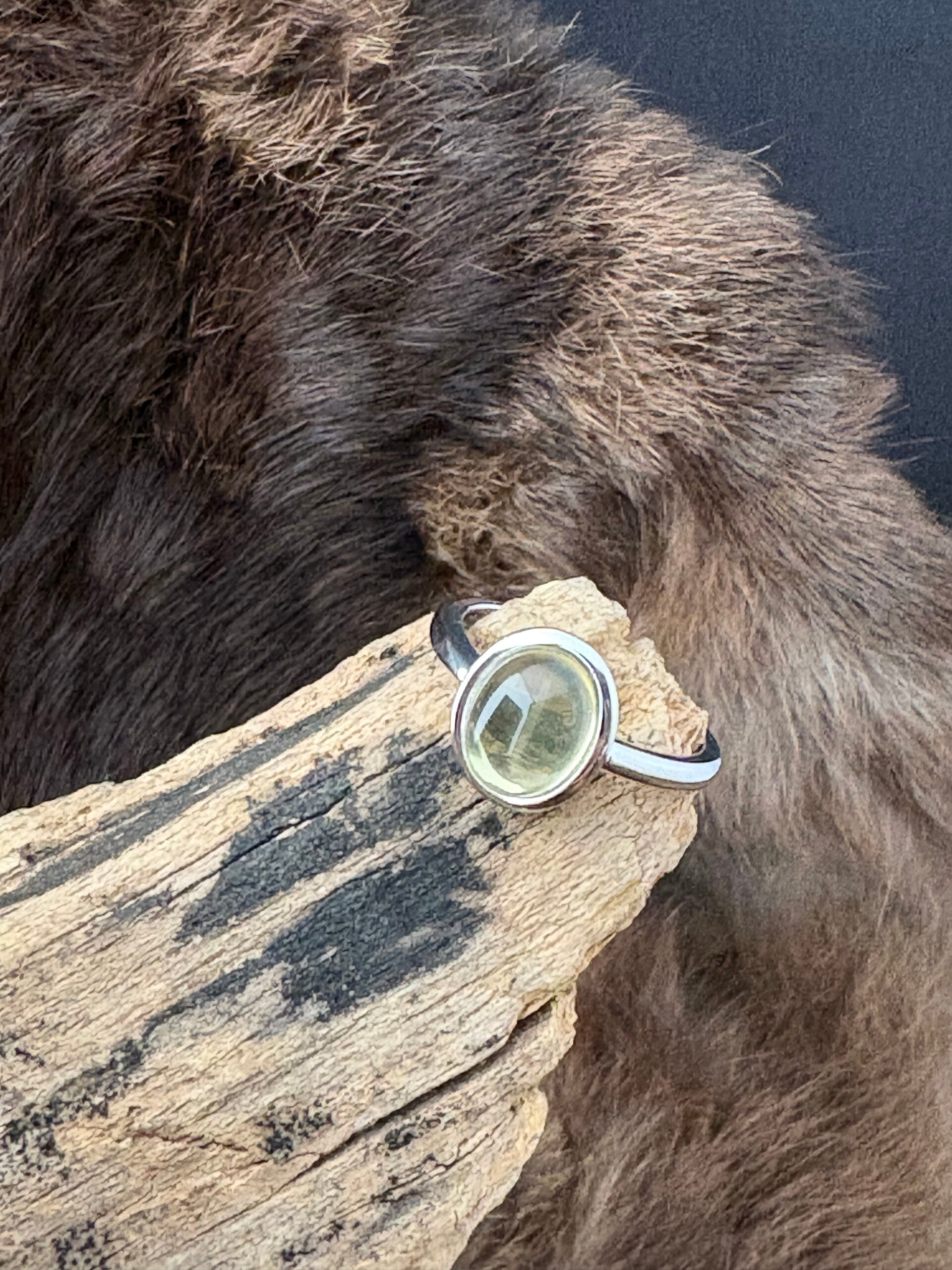 zilver gerhodineerde Ring met cabuchon geslepen lemon kwart 12/10 mm kop maat 17 3/4 andere maat neem even contact op via de app