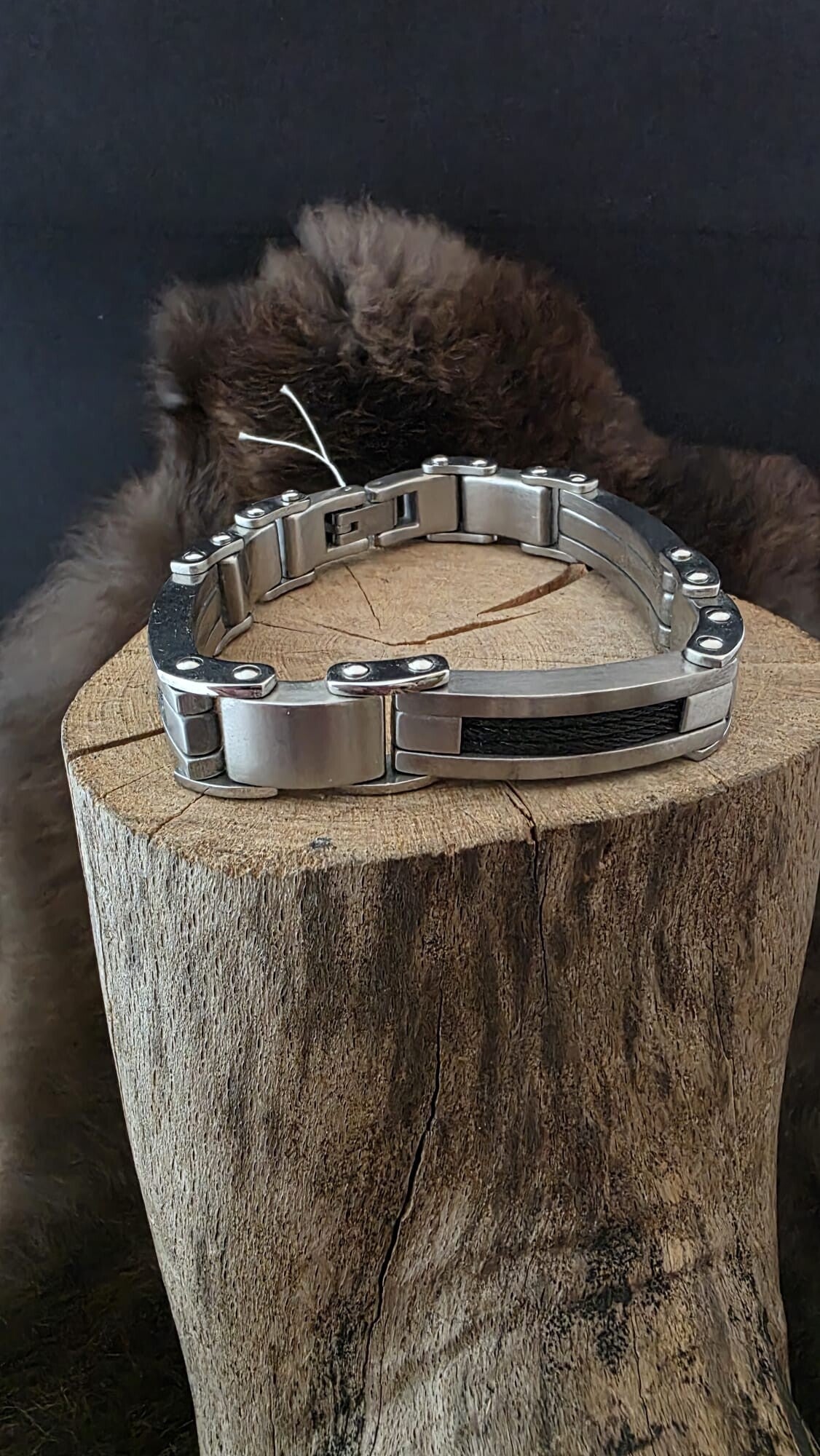 edelstalen armband 21 cm bij 10 mmmet zwart staal draad