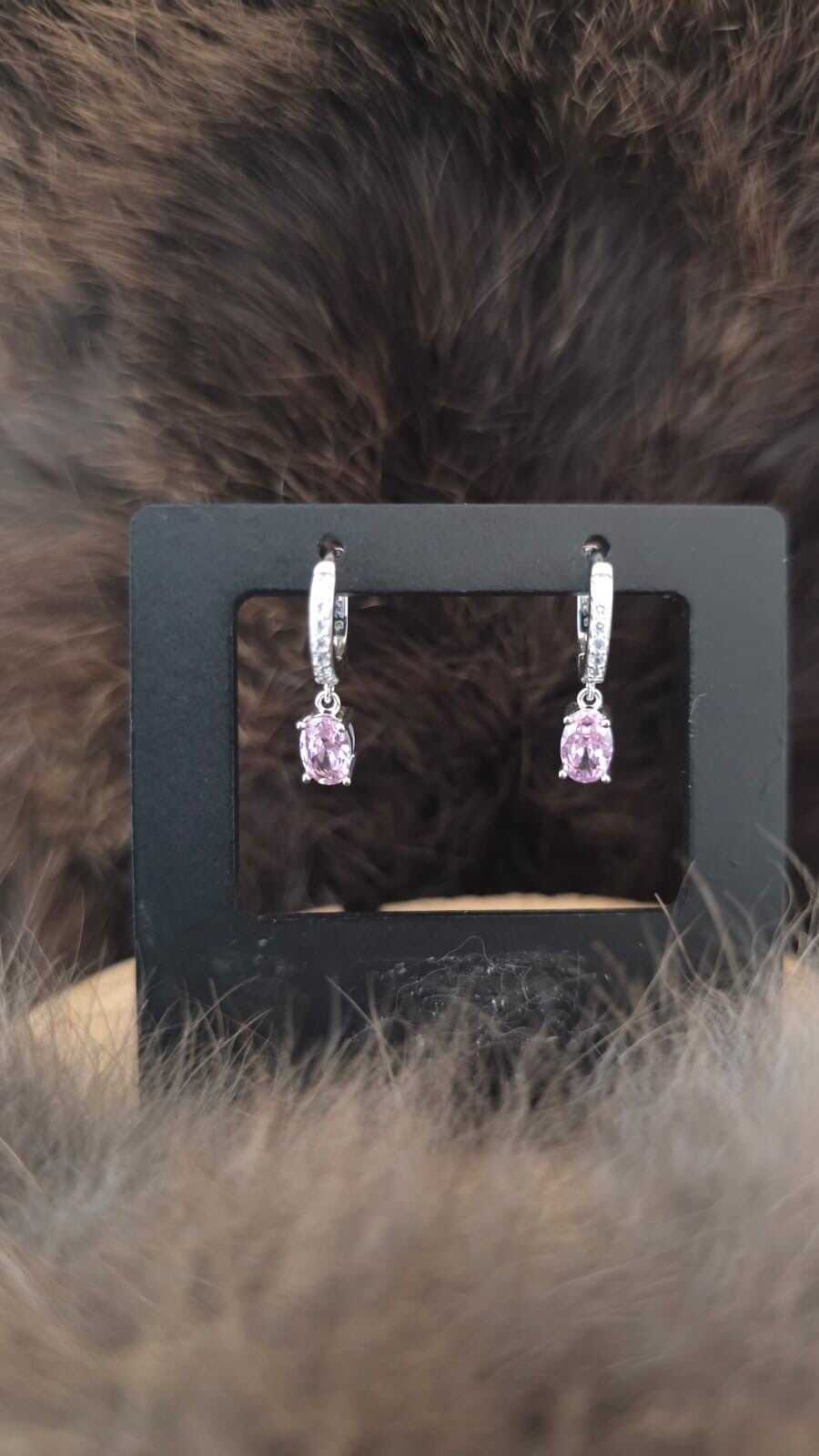 Zilveren klap creool met zirkonia en hangende roze ovale zirkonia 11/18/1,5