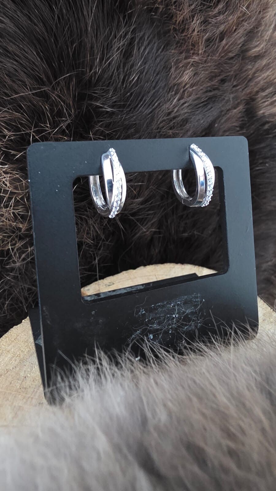 Zilver klap creool 14 mm bij 4 mm met zirkonia