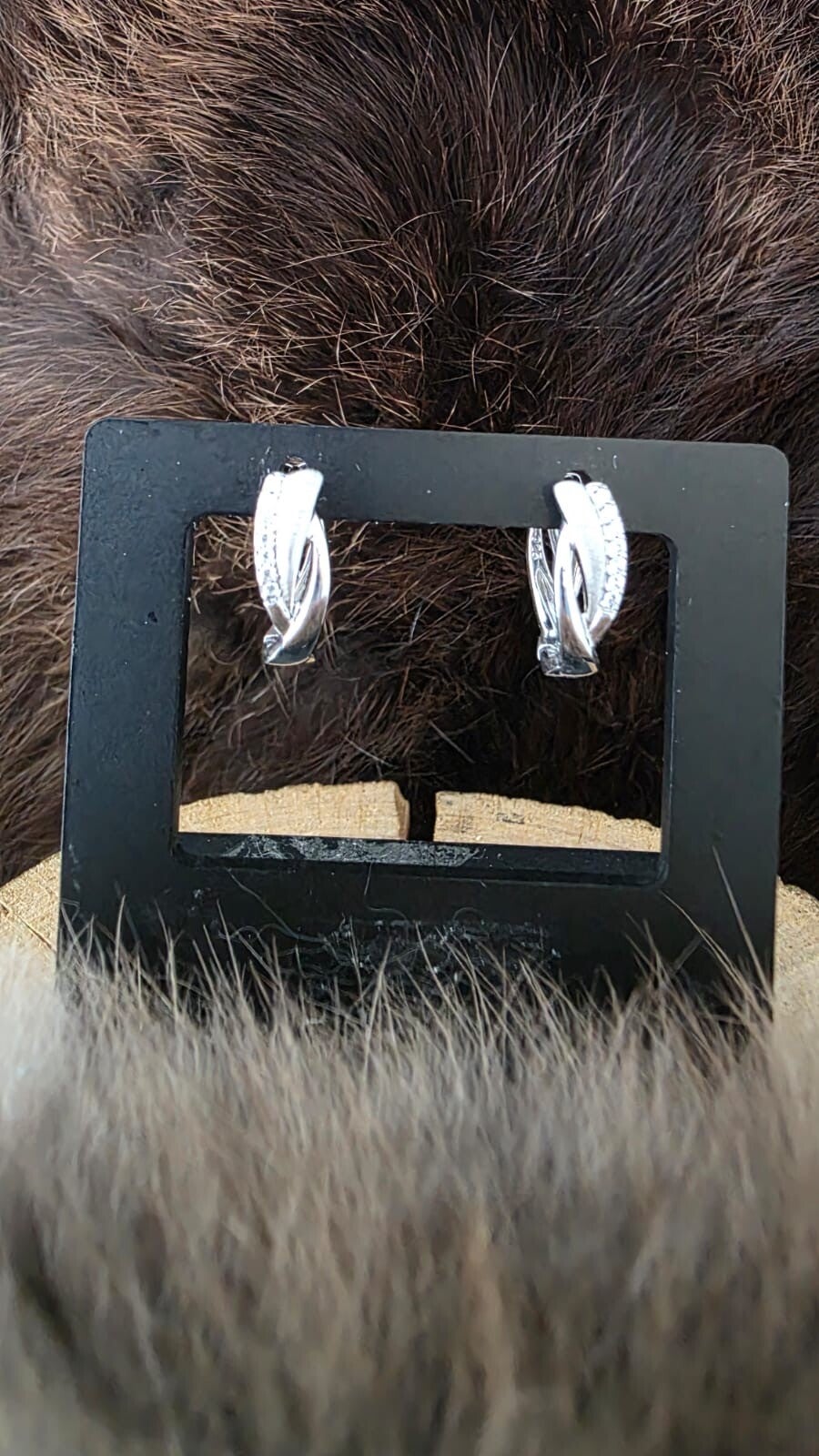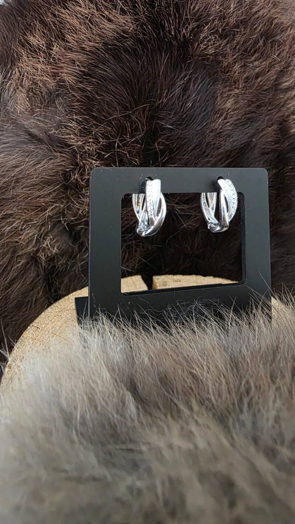 Zilveren klapcreool fantasiemat en glans met baan van zirkonia 4,5/15