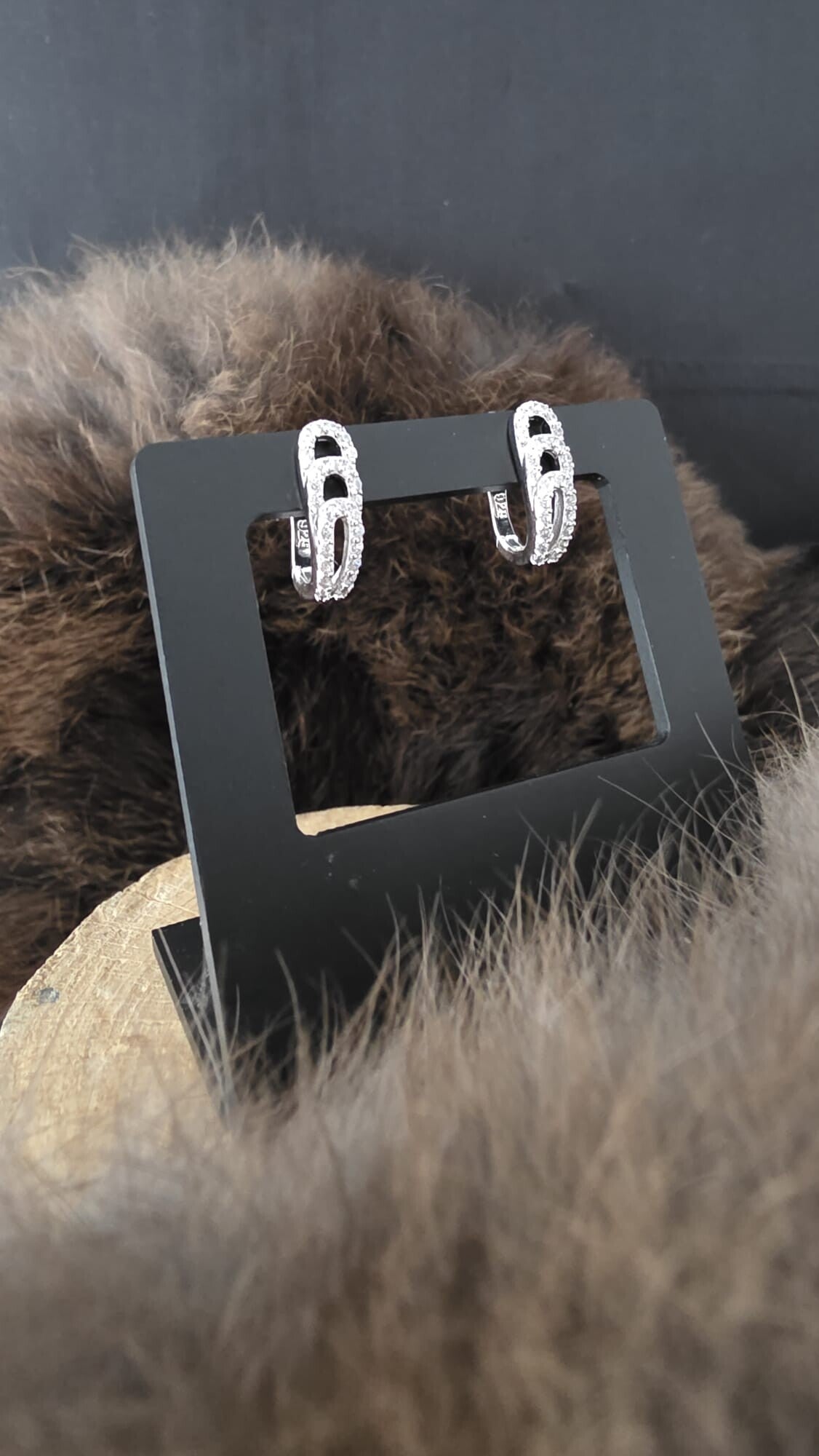 Zilveren klapcreool rechthoekig 14/4,5 mm met zirkonia