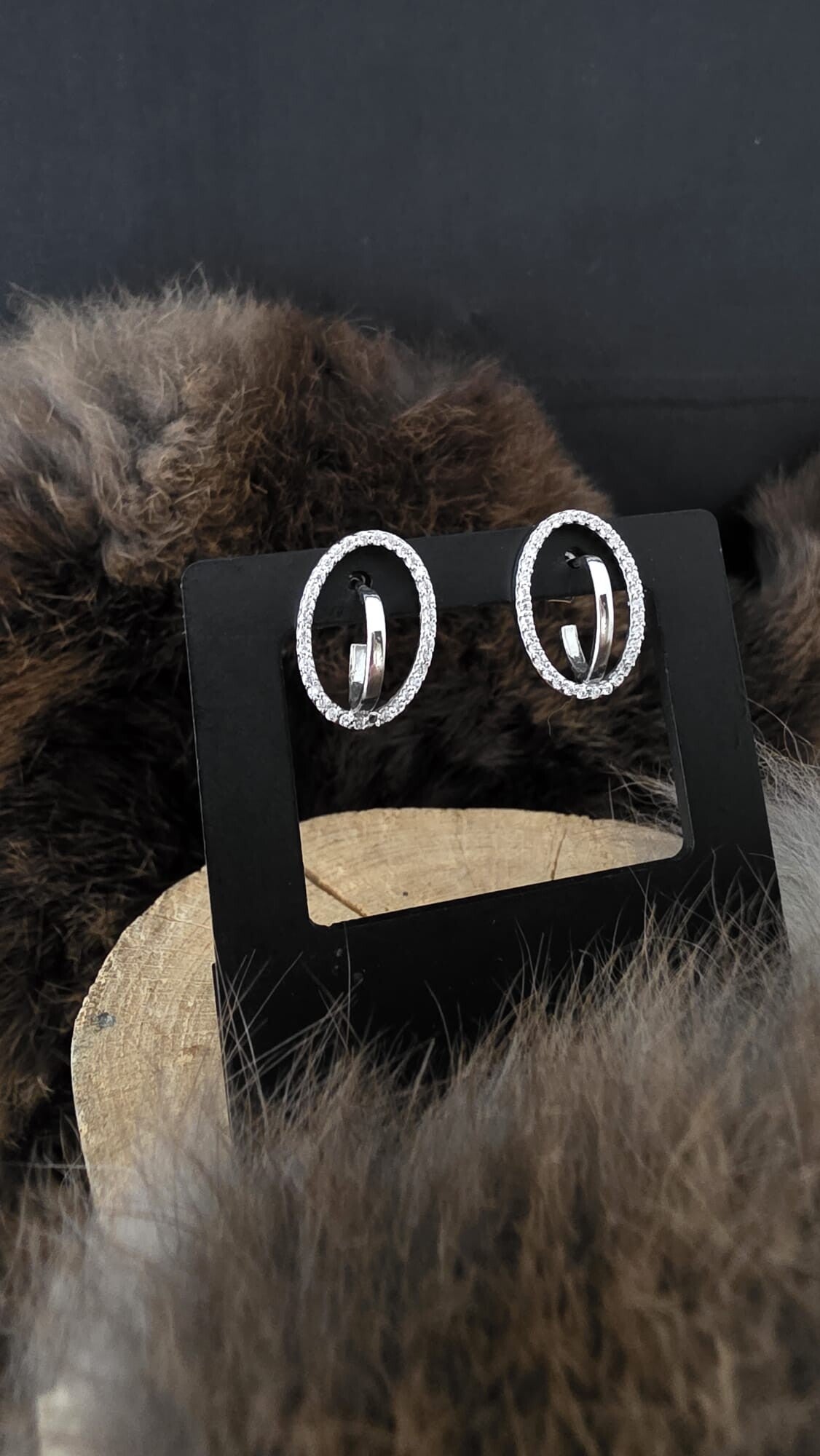 Zilveren oorstekers 12/17 mm ovaal met zirkonia