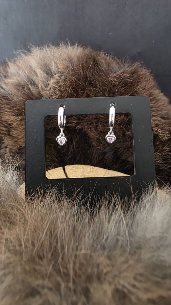 Zilver klapcreool met hartje van roze zirkonia 11 mm 15 mm